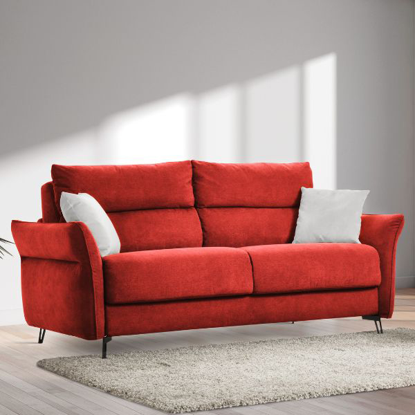 Gallery Tendances Dimensions : l 200 x h 98 x p 100 cm Le canapé-lit SOAVE offre une solution pratique pour les espaces de vie polyvalents en passant facilement d’un canapé classique à un lit confortable en un geste. Grâce à son système de canapé convertible astucieux, les coussins d’assise restent en place, offrant ainsi un gain de temps et d’espace appréciables. - Structure métallique, accoudoirs et bandeaux en contreplaqué - Suspension assise sur sangles élastiques - Coussinage en mousse polyuréthane HR assise 30 kg/m³ ; dossier 21 kg/m³ - Matelas hauteur 15 cm en mousse polyuréthane 30 kg/m³, coutil stretch 100% polyester, entièrement déhoussable et lavable à 30° - Tissu 100 % polyester. Existe en plusieurs tissus. canapé convertible