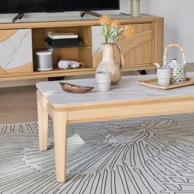 Gallery Tendances Dimensions : l 100 x h 37,5 x p 55 cm La collection RIVIERA mêle la force du bois à la douceur de la céramique, proposée en deux finitions : Brun panaché, au caractère affirmé, ou Beige veiné, lumineux et délicat. La table basse RIVIERA symbolise cette harmonie entre matériaux raffinés et design moderne. Pratique au quotidien et élégante en toutes circonstances, elle offre une grande surface idéale pour vos moments partagés. Son piètement en tilleul massif plaqué chêne souligne une silhouette contemporaine et accueillante. - Plateau : panneaux de particules revêtus de céramique - 2 finitions de céramique au choix : céramique beige veiné ou DEKTON® brun panaché - Pieds : tilleul massif plaqué chêne
