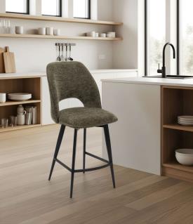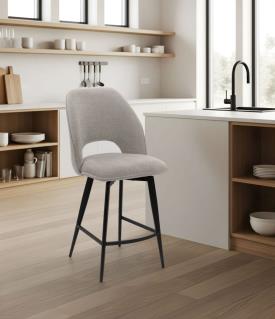 Girardeau Réf. 031412 / 031410 / 031411 / 031413 / 031414 / 031415 Dimensions : l 47,5 x h 102,5 x p 58 cm 6 couleurs disponibles Assise et dossier tissu Piètement fer finition époxy gris anthracite – Hauteur assise 65cm Composition tissu : 100% polyester Martindale : 50000 – résistance lumière : >4 – Densité mousse PU : 24kg/m3 Structure : Tube fer et contreplaqué Livrée démontée – Emballée par 2 L.: 47,5 – H.: 102,5 – P.: 58 – 6,9 Kgs chaise haute
