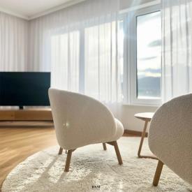 Thalia Uno joue clairement la carte de la douceur. Avec son dos arrondi et ses plis travaillés sur le bas du dossier, ce fauteuil procure une qualité d’assise incomparable. Visuellement chaleureux et convivial, il incite au repos. Il se fond à merveille dans les lobbies d’hôtel ou dans un salon pour des pauses détente au coin d’une cheminée. Thalia Uno dispose d’un piètement rond en bois, disponible dans plusieurs teintes, de même que son revêtement (tissu ou simili cuir).