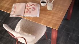 Le pied de table délicat en métal, enveloppé de bois, offre une stabilité optimale.
