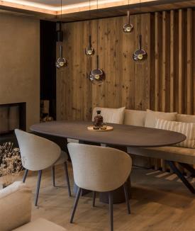 Une grande table conviviale en bois massif.