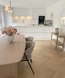 Optez pour un plaquage en point de hongrie et donnez à votre table Dolmen une couche supplémentaire d’élégance.